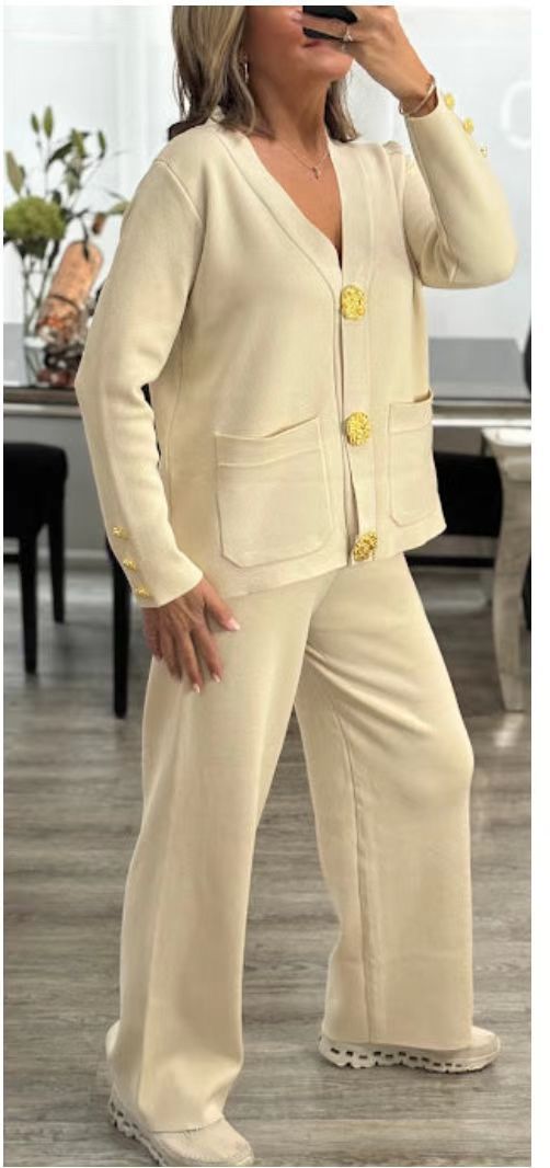 SALE Metal Buckle Knitted Cardigan Sweater Wide Leg Pants Suit